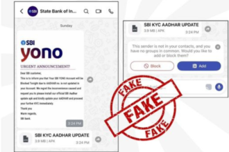 The Government has issued a clear warning against a fake message circulating on social media in the name of State Bank of India (SBI), which falsely claims that users must download an APK file to update their Aadhaar details. The misleading message, shared in video and text form, threatens users that their SBI YONO app will be blocked if Aadhaar…